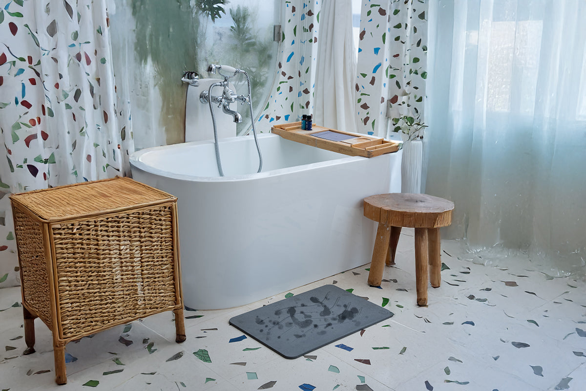The stone bath mat is so cute, it's the best part of my bathroom!